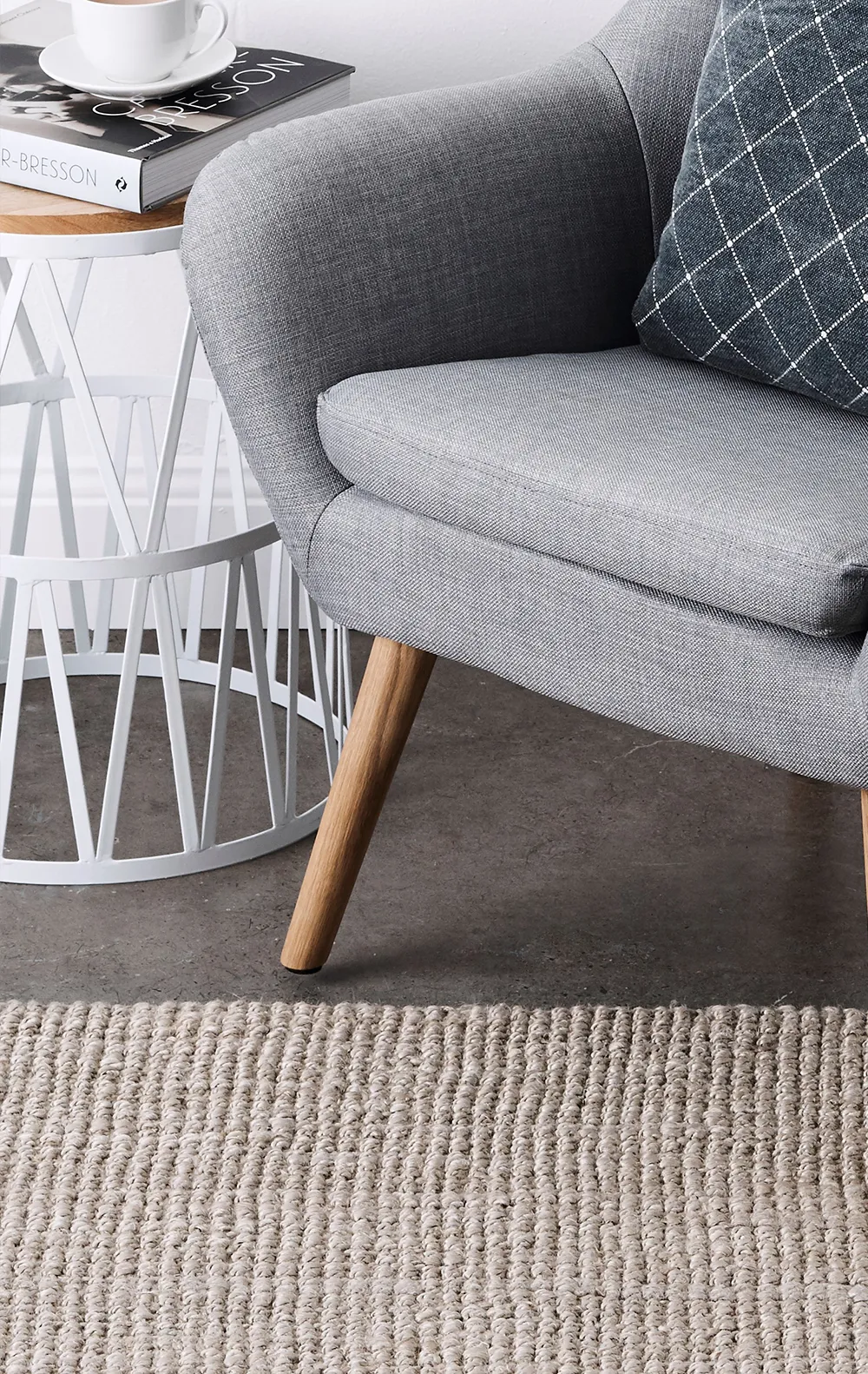 A chunky bouclé weave feels comfortable underfoot and enriches your interiors with distinctive, natural texture and warmth. The hand-loomed construction is characterized by differences in shape and colour—no two will be exactly the same. Available sizes are 60x90cm, 50x140cm, 80x150cm, 80x300cm, 80x400cm, 160x230cm, 180x270cm, 240x300cm, 270x360cm and 300x420cm.