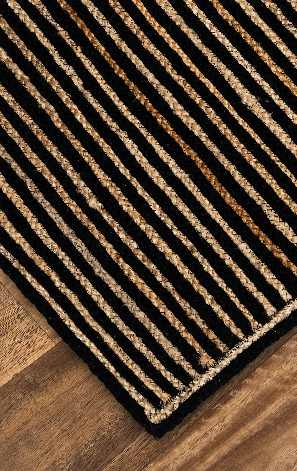 Madison-Braided -Hand Knotted Stripped Jute and Wool Rug with Cotton Cloth Backing-Natural/Black (AJWM-NK)