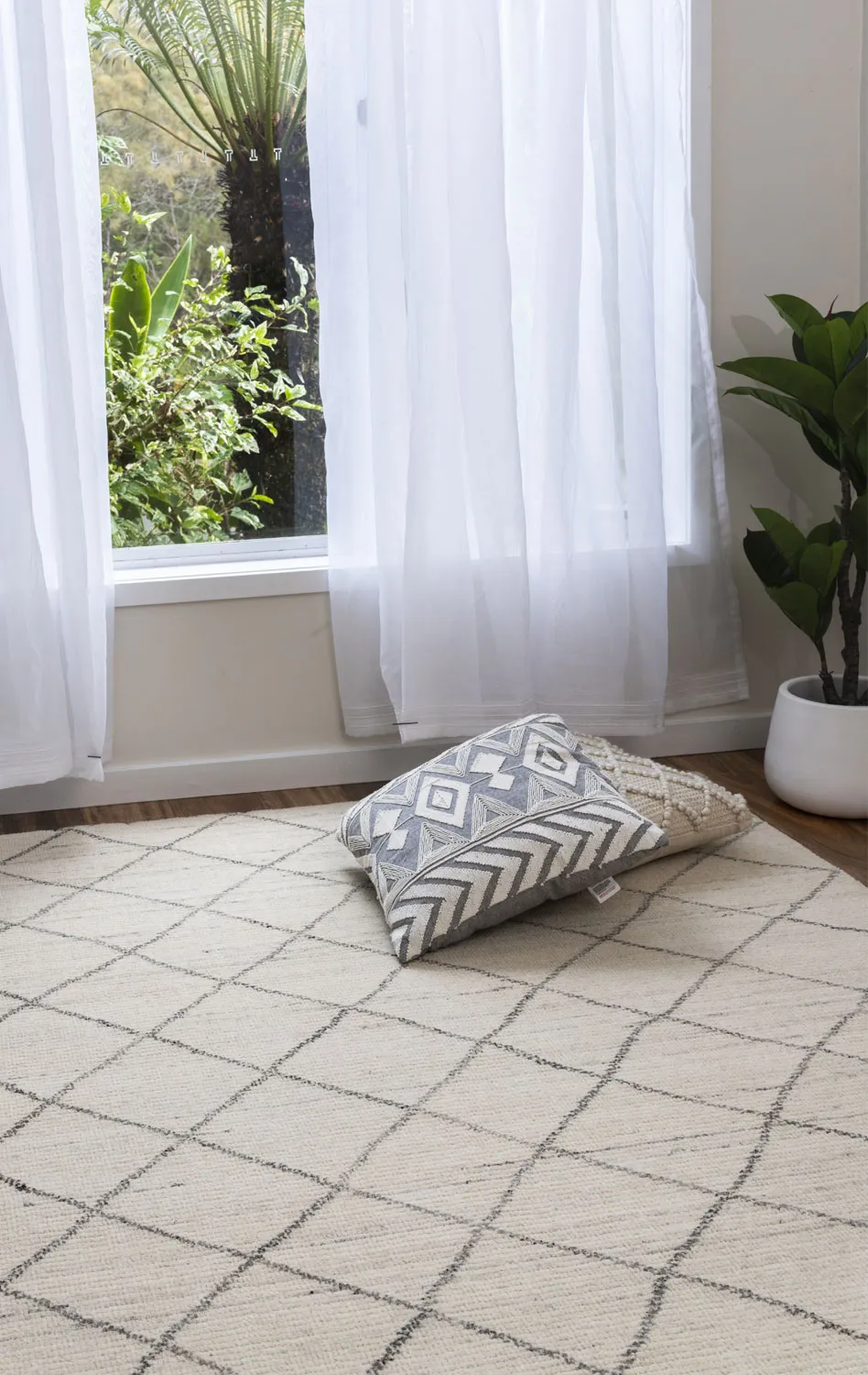 Orlean-Hand Knotted Diamond Wool Rug-Natural/Black (AOWR-NK)