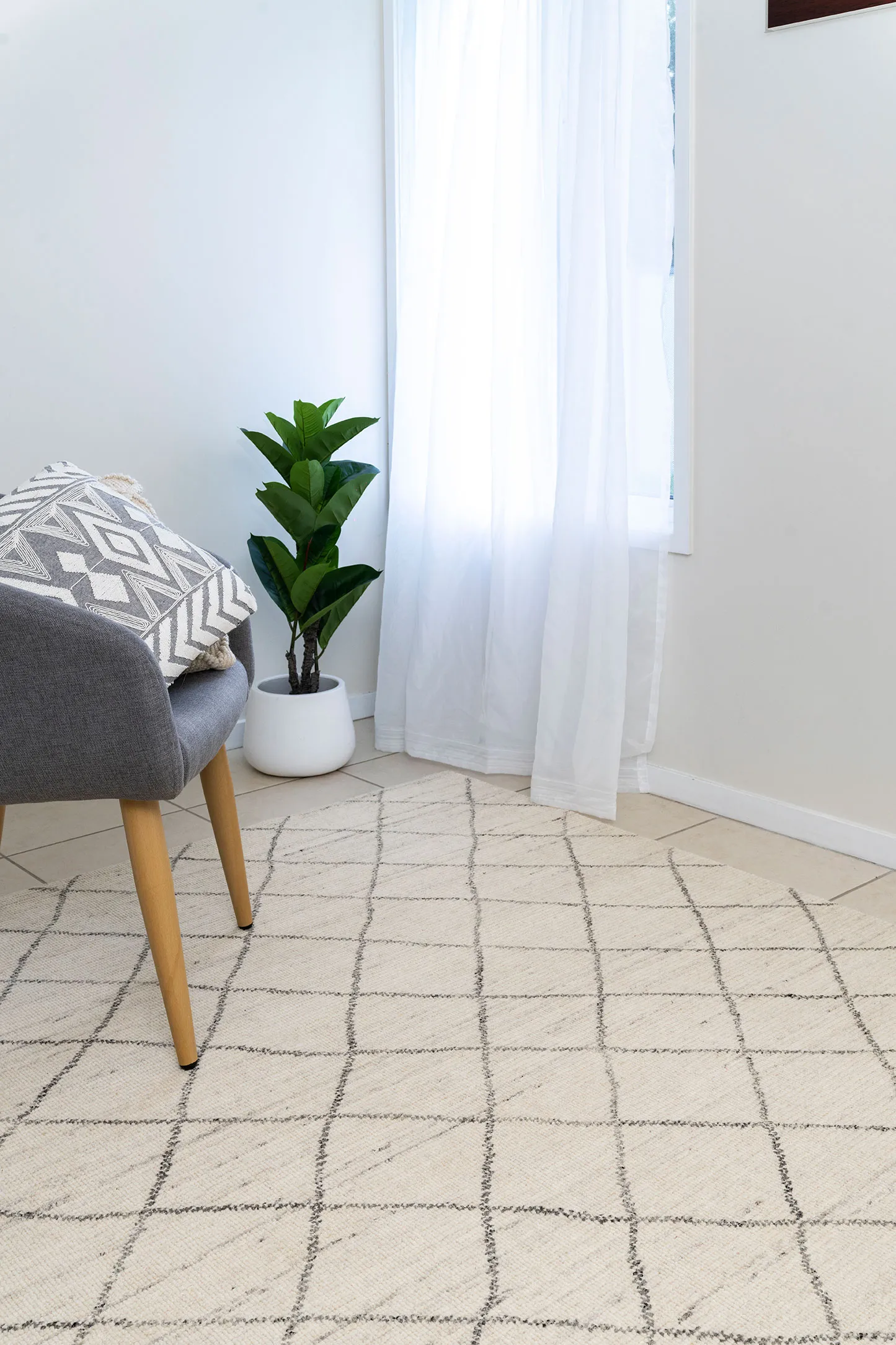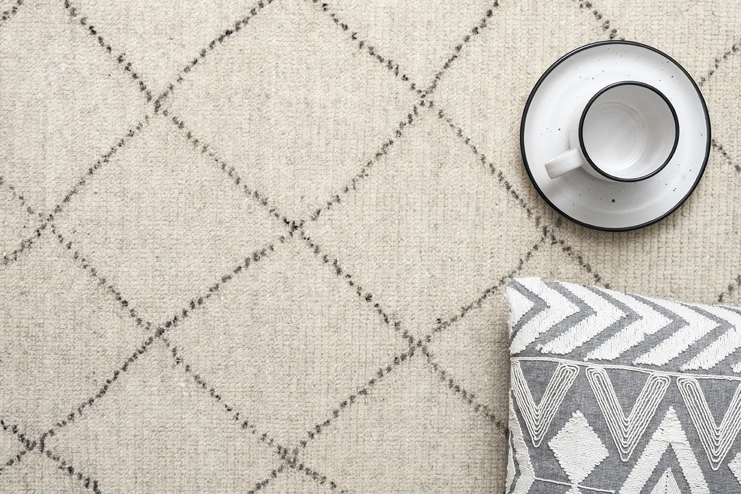 Contrast diamonds frame our Orlean rug with sketched lines and softly understated texture. The rug gets its marled shading from the wool’s authentic, undyed hues, and enhanced richness from hand-spun, washed yarns.
